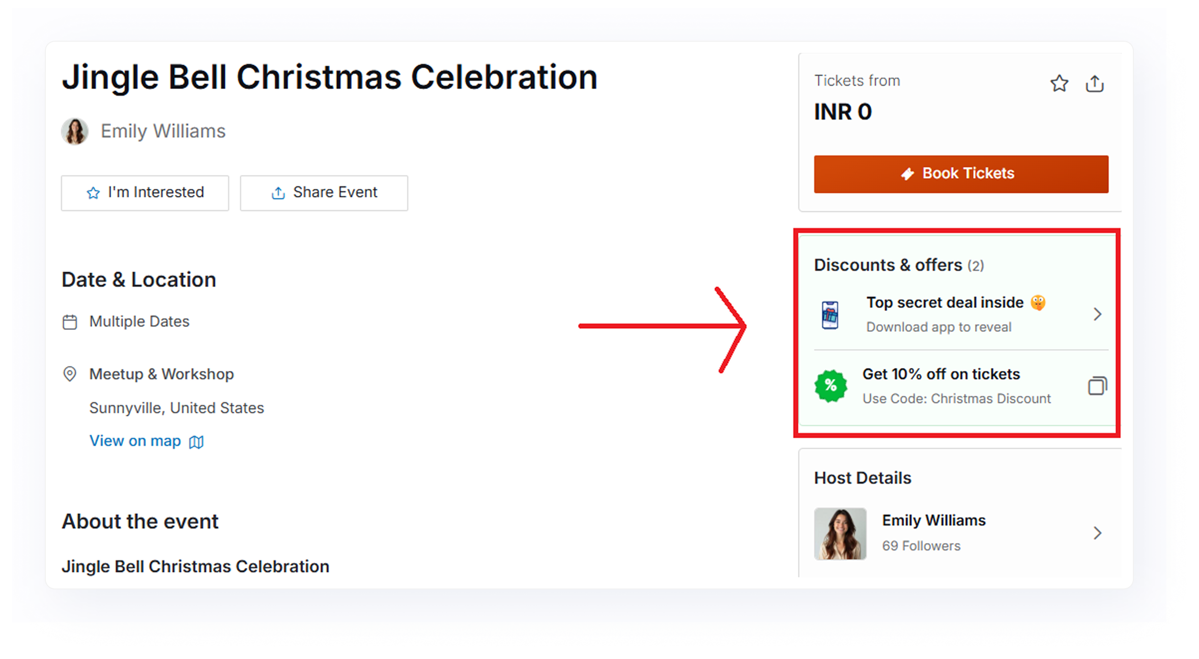 This is how your public discount code will look on your event page: