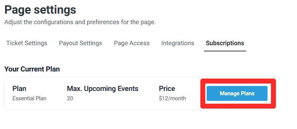 From the Organizer Dashboard, navigate to the menu on your left and select Organizer Settings, From there, click on Subscription.